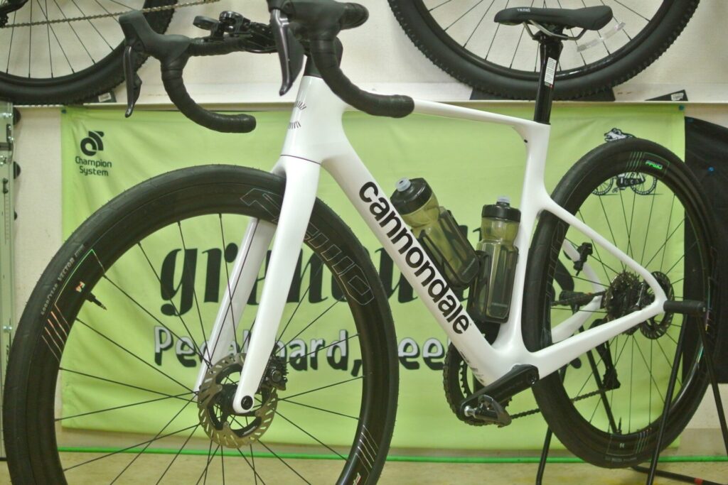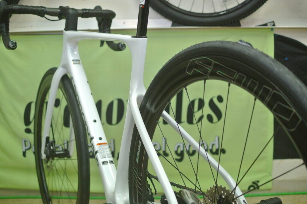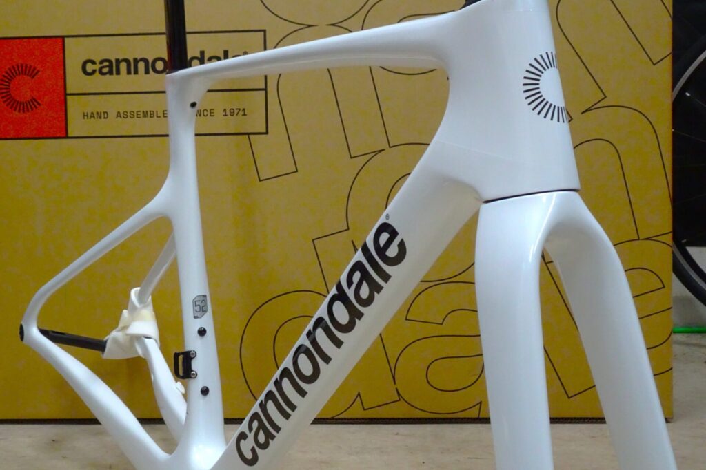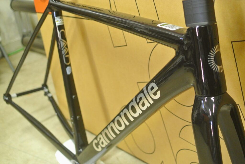 Cannondaleのレーシングバイク「SuperSixEvo」です。2023年に第4世代へ切り替わり、販売面・顧客満足度ともに未だ好調ですが、今期早くもモデルチェンジが掛かりました。第5世代へと進化します。当店にはスタンダードMod(標準グレードのやつ)のフレームセットで入荷しました。