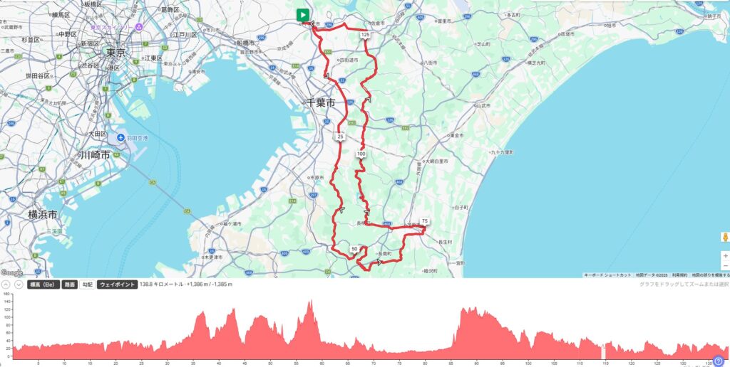 茨城の田舎道とグルメを楽しむ距離103km・獲得標高1250mです。