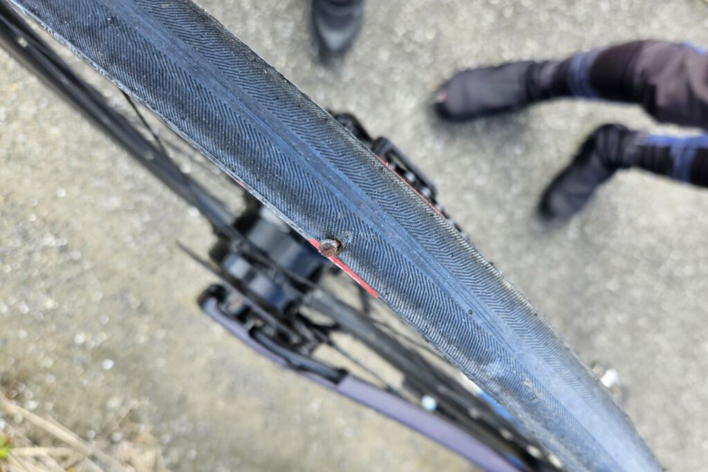 利根川沿いの砂利道で下ろしたてのタイヤのグラベルテスト。