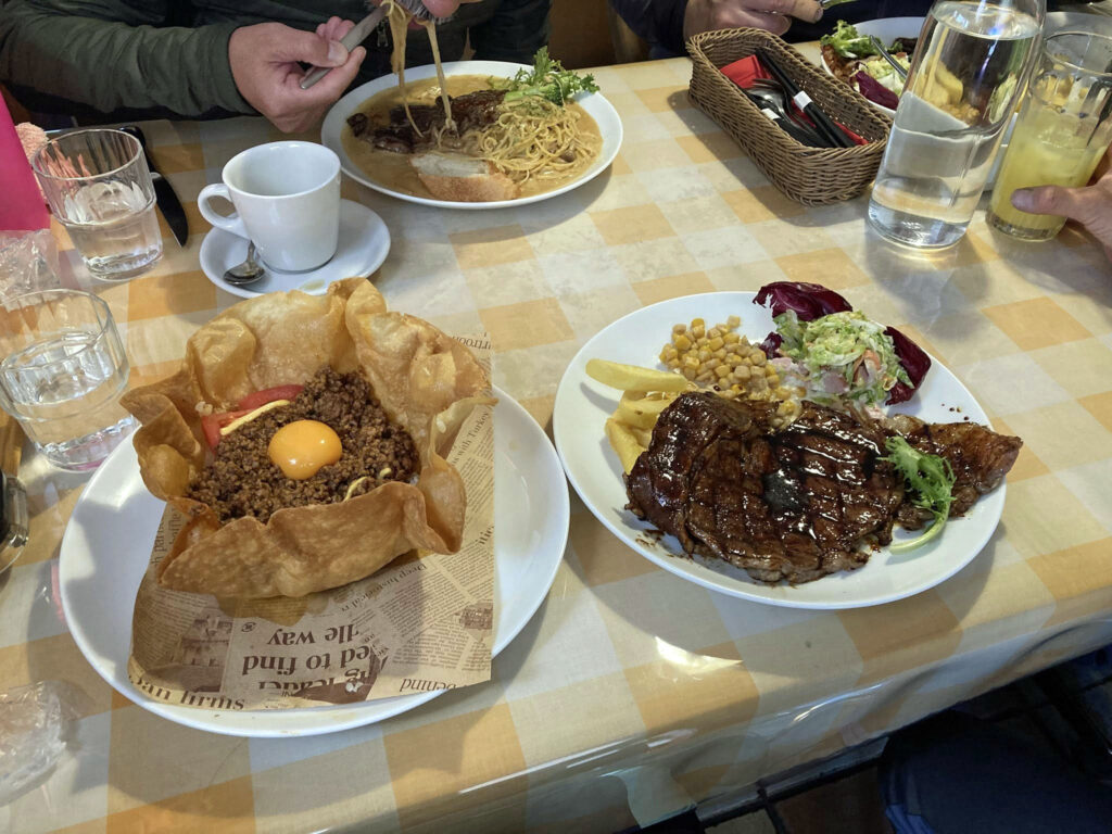 12時につくばみらいのステーキ屋「味楽乃」さんに到着